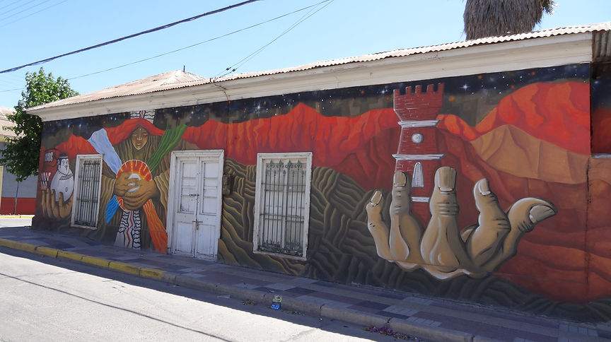 Mural donde se ven reflejadas las riquezas del valle de elqui, desde su riqueza natural y el legado de nuestros antepasados.